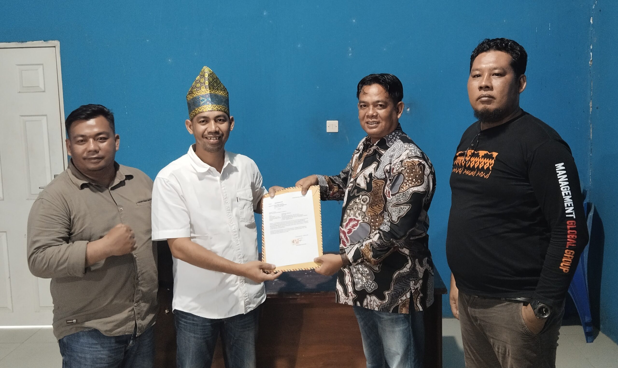Ketua PWI Tulang bawang , Alamsyah , menyampaikan ucapan selamat kepada Darsani dan Akuan Januar yang sudah diterima menjadi PPK dan PKD pengawas Pemilu Kecamatan Meraksa Aji Tuba.
