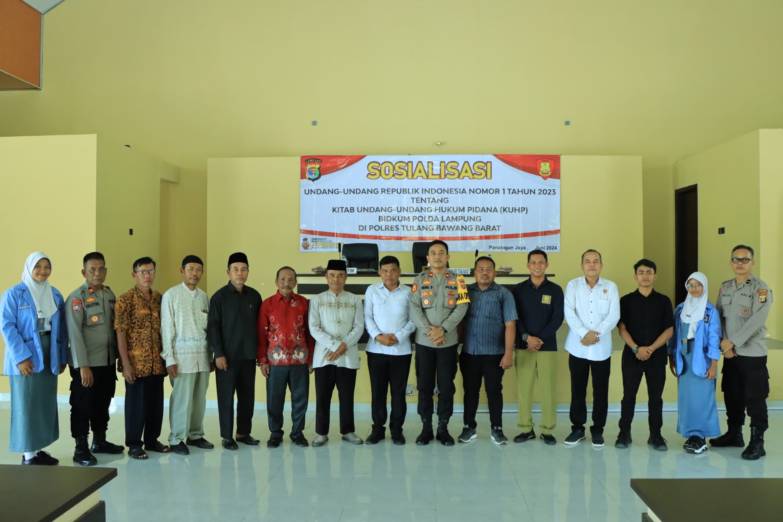Harianposlampung – Polres Tulang Bawang Barat menerima kunjungan kerja dari Bidang Hukum (Bidkum) Polda Lampung dalam rangka Sosialisasi dan penyuluhan Hukum Undang Undang RI Nomor 1 Tahun 2023 tentang KUHP Di Aula Polres Tulang Bawang Barat, Selasa Kemarin.(4/6/2024).