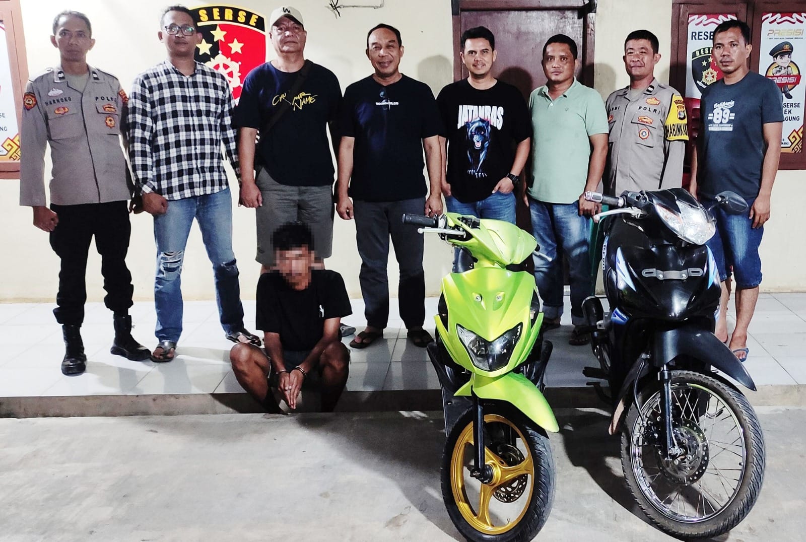 Lanjutnya, adapun barang bukti (BB) yang disita oleh petugas kami dari tangan pelaku yakni dua unit sepeda motor, dengan rincian sepeda merek Suzuki Nex warna hijau, BE 4493 LS, dan sepeda motor merek Honda Revo warna hitam, F 2362 MC.