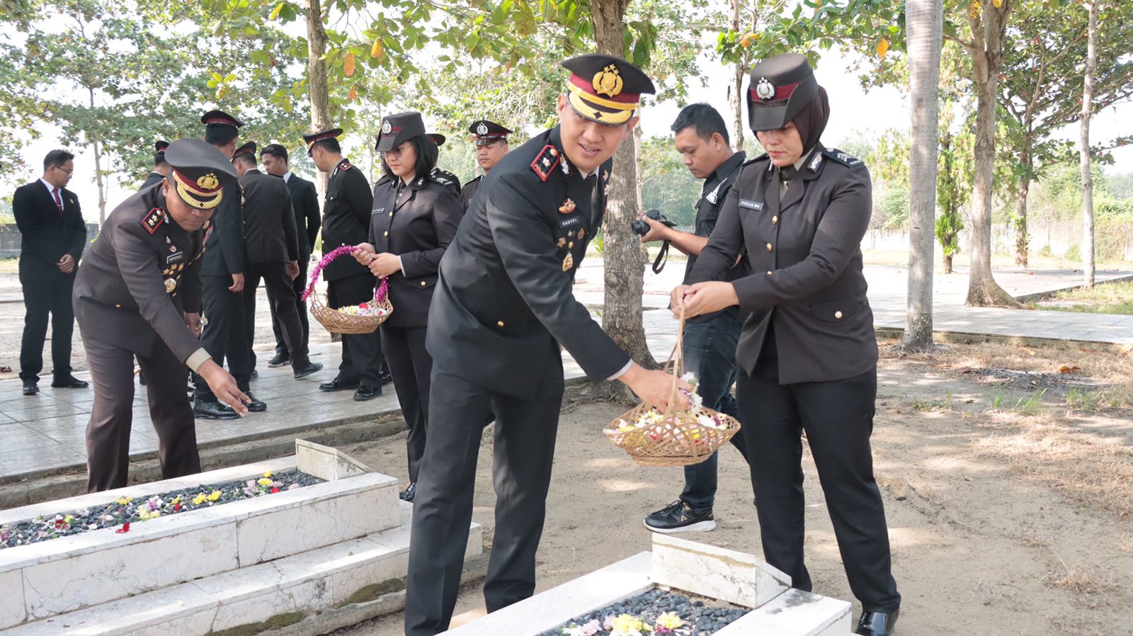 “Hari ini, kami menggelar Upacara Ziarah dan Tabur Bunga di TMP Tiuh Tohou yang merupakan salah satu rangkaian kegiatan untuk menyambut Hari Bhayangkara ke-78 tahun 2024. Acara puncaknya diperingati pada tanggal 1 Juli 2024 nanti,” kata AKBP James.