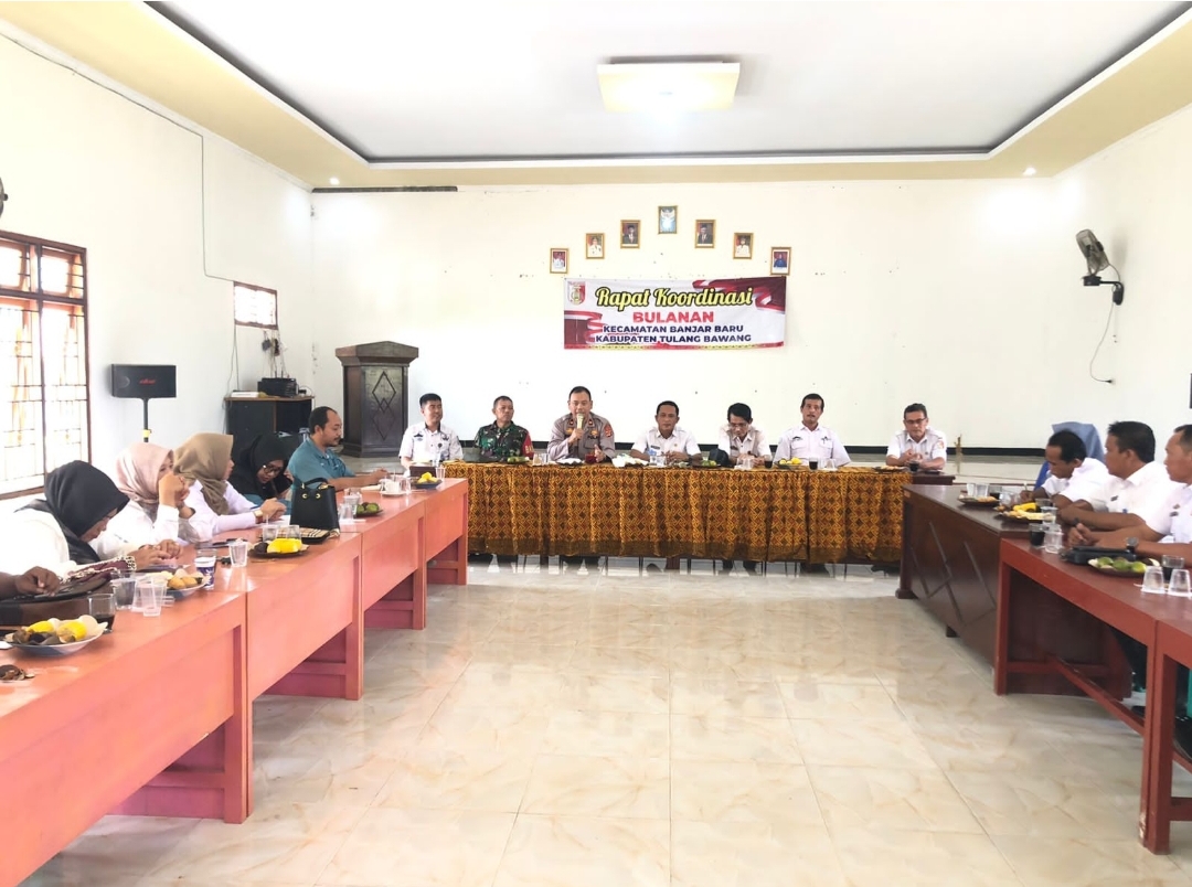 Rakor tersebut dipimpin Camat Banjar Baru, Wayan Wila Rahula Putra, dan dihadiri Kapolsek Banjar Agung Kompol Feizal Reza Harahap, SE.,M.Si, Danramil Menggala diwakili Batibung Koramil Peltu Firmansyah, Kepala Puskesmas Banjar Baru Yusiko, dan Kepala BPP Banjar Baru Gatot Suseno.