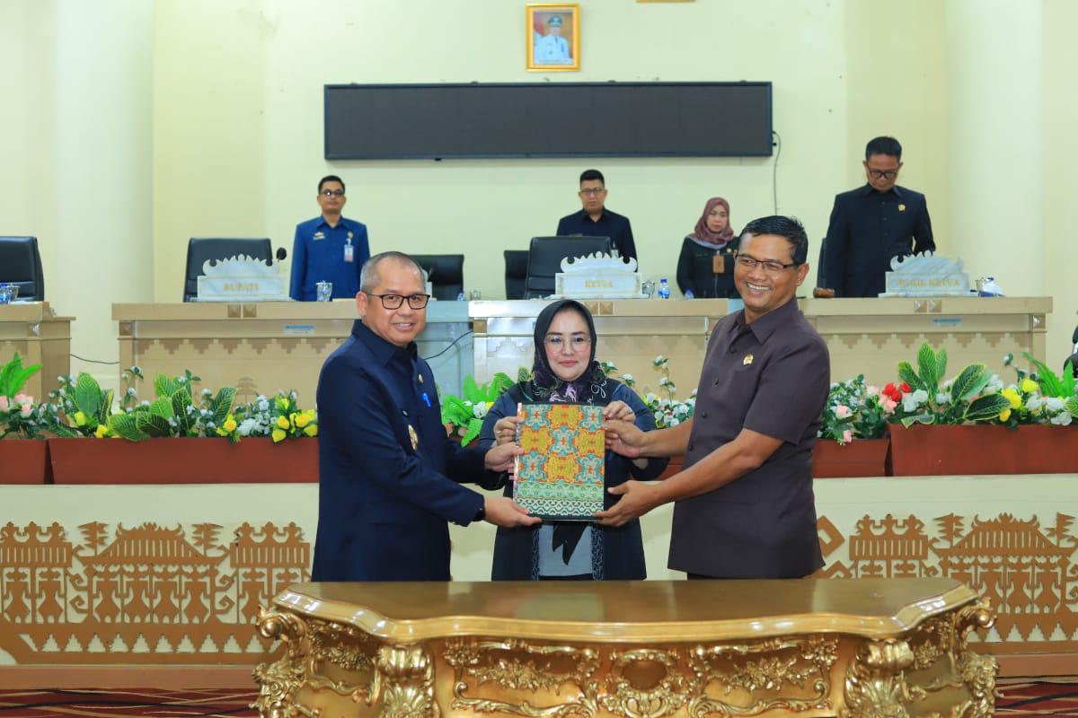Setelah penyampaian laporan selesai dilaksanakan, dilakukan Penandatanganan Keputusan DPRD dan Nota Kesepakatan Bersama antara DPRD dengan Pemerintah Kabupaten Tulang Bawang atas :