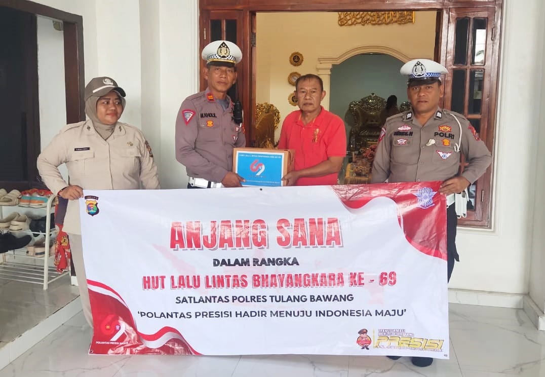 Lanjutnya, kegiatan anjangsana ini merupakan bagian dari rangkaian bakti sosial (baksos) yang dilaksanakan oleh Sat Lantas Polres Tulang Bawang untuk memperingati hari bersejarah bagi seluruh personel Polisi Lalu Lintas (Polantas).