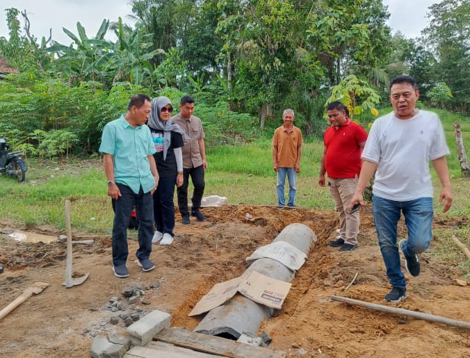 Terlihat Qudrotul Ikhwan dan Hankam Hasan turun langsung guna mengecek dan bergotong royong bersama-sama warga lingkungan Rengas Cendung setempat.