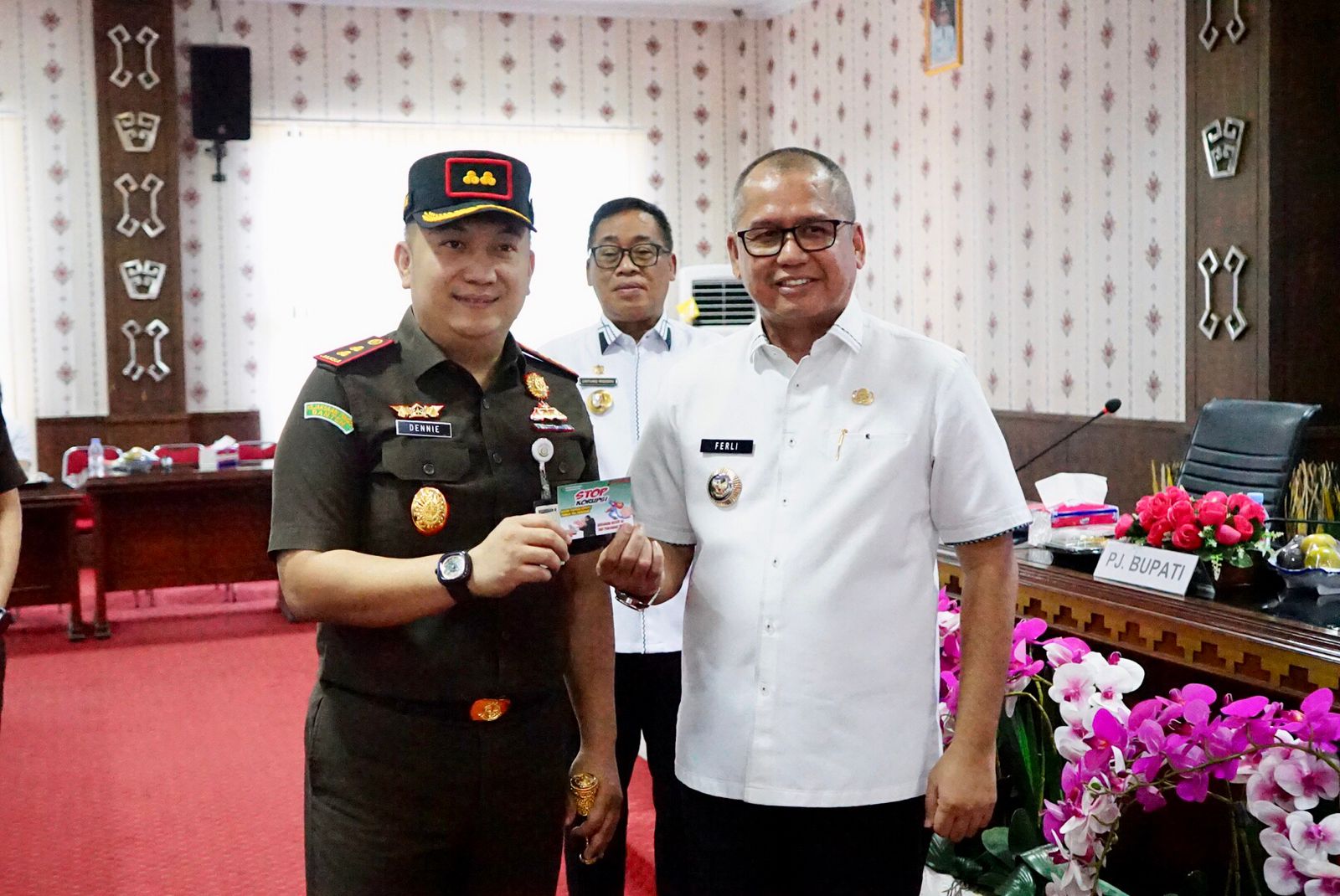 Tulangbawang, Harianposlampung.com – Pj Bupati Tulang Bawang Ir.Ferli Yuledi.,SP.,MM.,MT Menghadiri Acara Sosialisasi Anti Korupsi dan Pembinaan Integritas Serta Evaluasi Survei Penilaian Integritas & Evaluasi Laporan Hasil Kekayaan Penyelenggaraan Negara (LHKPN) di Lingkungan Pemkab Tulang Bawang (Online & Offline) yang di laksanakan di Ruang Rapat Lantai II Kantor Bupati Tulang Bawang