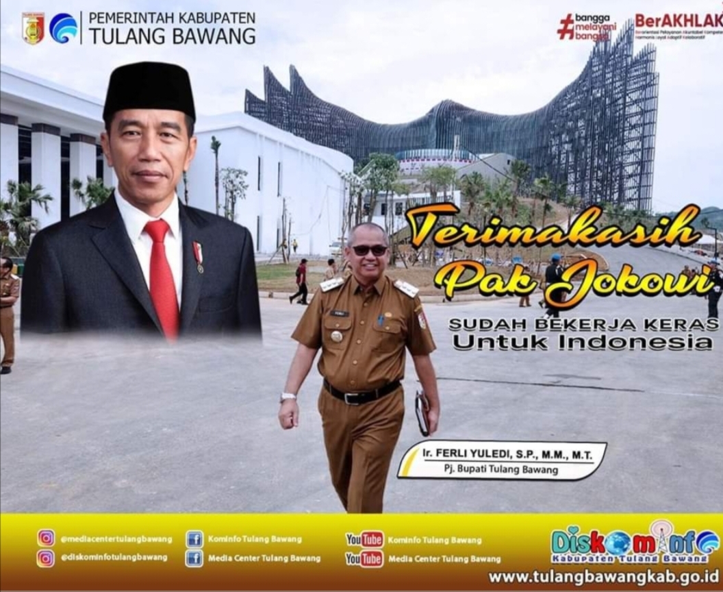Tulangbawang,Harianposlampung.com – Pj Bupati Tuba Ferli Yuledi memasang ucapan Terima Kasih Pak Jokowi diWebsite medsos Media Center kabupaten Tulang bawang, Sabtu,19 0ktober 2024 sebagai bentuk penghargaan kepada Presiden Joko Widodo atas pengabdiannya selama dua periode memimpin Indonesia,