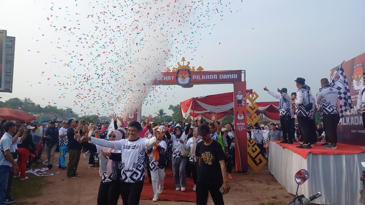 Tulangbawang Barat,Harianposlampung.com – Antusias ribuan warga mengikuti Jalan Sehat Pemilihan Kepala Daerah (Pilkada) Damai 2024 yang diselenggarakan Komisi Pemilihan Umum (KPU) Kabupaten Tulang Bawang Barat (Tubaba) Lampung, Jumat (15/11/2024).