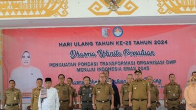 Tulangbawang, Harianposlampung.com – Pj Bupati Tulang Bawang Ir. Ferli Yuledi.,SP.,MM.,MT Menghadiri Acara Peringatan HUT Dharma Wanita Persatuan (DWP) Ke – 25 Tahun 2024 Kab. Tulang Bawang & Seminar Pola Asuh Anak di Gedung Serba Guna ( GSG) Menggala, Selasa 17 Desember 2024