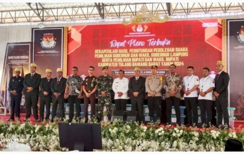 Tulangbawang Barat, Harianposlampung.com – Rapat Pleno Terbuka Rekapitulasi Hasil Penghitungan Perolehan Suara Pemilihan Gubernur dan Wakil Gubernur Lampung serta Bupati dan Wakil Bupati Tulangbawang Barat Tahun 2024 resmi dibuka pada hari ini, Rabu (04/12/2024), di GOR Kangungan Ratu. Acara ini diadakan selama satu hari, yaitu 4 Desember 2024, dan diikuti oleh 9 kecamatan di Kabupaten Tubaba.