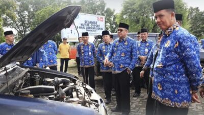 Setelah melaksanakan kegiatan upacara bulanan, Pj bupati Tulang Bawang Ir.Ferli Yuledi di dampingi Asisten Bidang Administrasi Umum, BPKAD melanjutkan kegiatan dengan Apel Kendaraan Dinas Operasional di Lingkup Pemkab. Tulang Bawang Tahun 2025 guna untuk mengecek kondisi kendaraan dinas, memastikan kelayakan, dan menjaga tertib administrasi. Apel kendaraan juga dapat menjadi momentum untuk memfasilitasi pembayaran pajak kendaraan dinas di lingkup Pemerintah Kabupaten Tulang Bawang