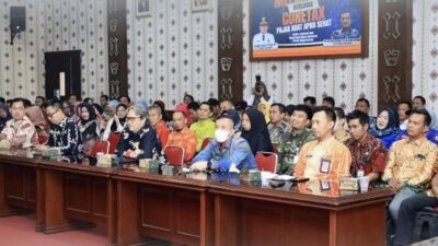 Tulangbawang,Harianposlampung.com – Pj. Bupati Ir. Ferli Yuledi., SP.,MM.,MT Memberikan Sambutan Acara Sosialisasi CORETAX (Pajak Online) di Ruang Rapat Utama Lantai II Kantor Bupati Tulang Bawang.,Kamis, 06 Februari 2025
