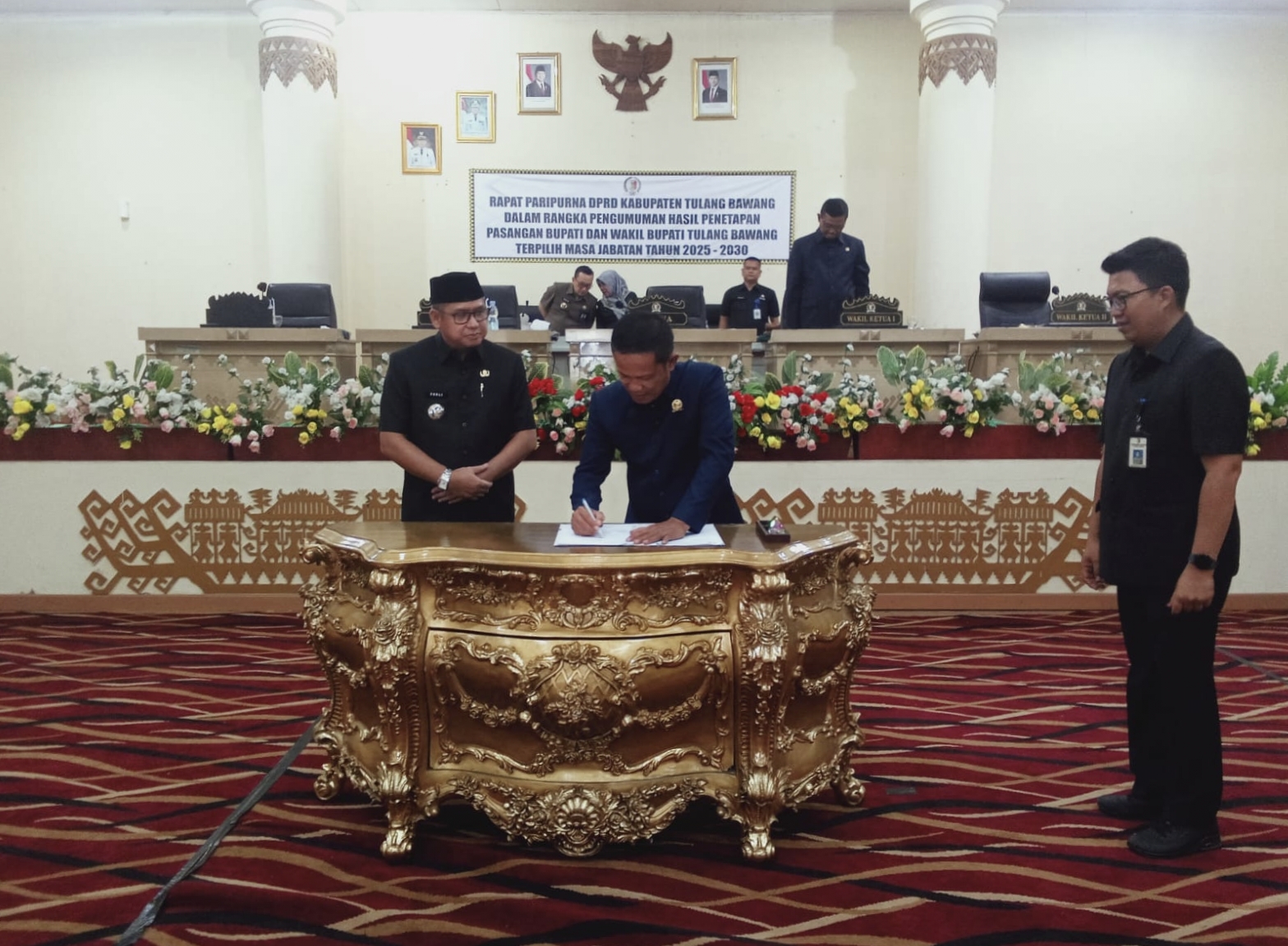 “Sebagaimana telah diketahui, pada tanggal 27 November 2024 telah dilaksanakan pemilihan Bupati dan Wakil Bupati Tulang Bawang, masa jabatan 2025 – 2030 dalam perhelatan pilkada serentak tahun 2024. KPU Tulang Bawang telah menetapkan pasangan Bupati dan Wakil Bupati terpilih hasil pilkada serentak tahun 2024, sesuai dengan keputusan KPU kabupaten Tulang Bawang nomor 25 Tahun 2025 Tentang Penetapan Pasangan Calon Bupati dan Wakil Bupati Terpilih Kabupaten Tulang Bawang Tahun 2024, dan telah menyampaikannya kepada DPRD kabupaten Tulang Bawang nomor 51/PL.02.7-SD/1805/2025 tanggal 6 Februari tahun 2025”. Ujarnya Sopi’i Azhari