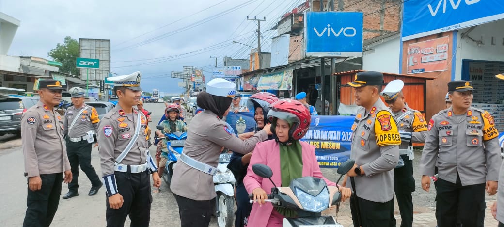 Selain itu, Kapolres Mesuji beserta Jajaran membagikan helm kepada sejumlah pengendara sebagai upaya untuk meningkatkan kesadaran demi keselamatan lalu lintas.