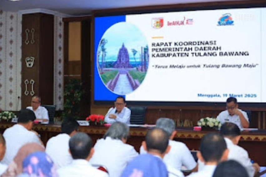 Tulangbawang,Harianposlampung.com , -Perintah Kabupaten Tulang Bawang menggelar Rapat Koordinasi guna Optimalisasi Pelaksanaan Tugas dan fungsi Organisasi Perangkat Daerah, yang bertajuk “Terus Melaju Untuk Tulang Bawang Maju” diselenggarakan di Ruang Rapat Utama lantai 2 Setdakab setempat. Rabu 19 maret 2025