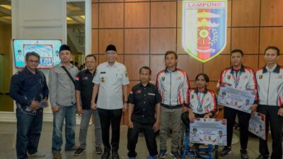Bandarlampung,Harianposlampung.com – Pemerintah Provinsi Lampung menyerahkan bonus kepada para atlet dan pelatih yang berhasil meraih prestasi pada ajang Pekan Paralimpiade Nasional (Peparnas) XVII di Solo yang berlangsung pada 6–13 Oktober 2024 lalu.