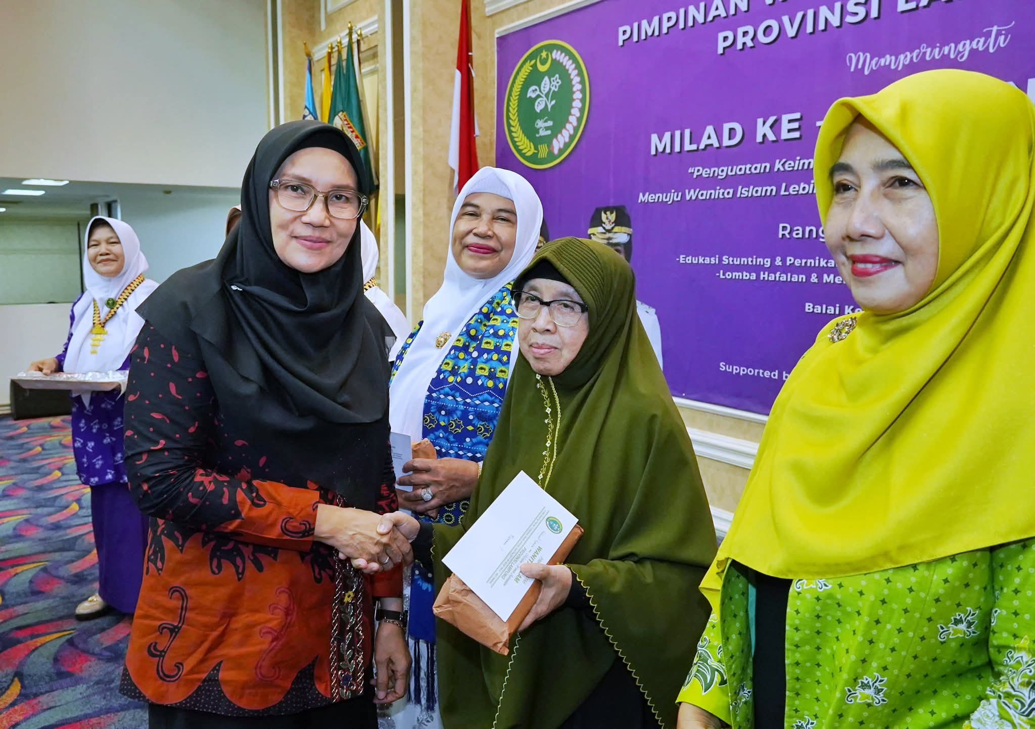Melalui Peringatan Milad Wanita Islam Ke-63, Ketua TP PKK Provinsi Lampung berharap organisasi Wanita Islam ini akan semakin memberikan dampak yang positif bagi Provinsi Lampung.