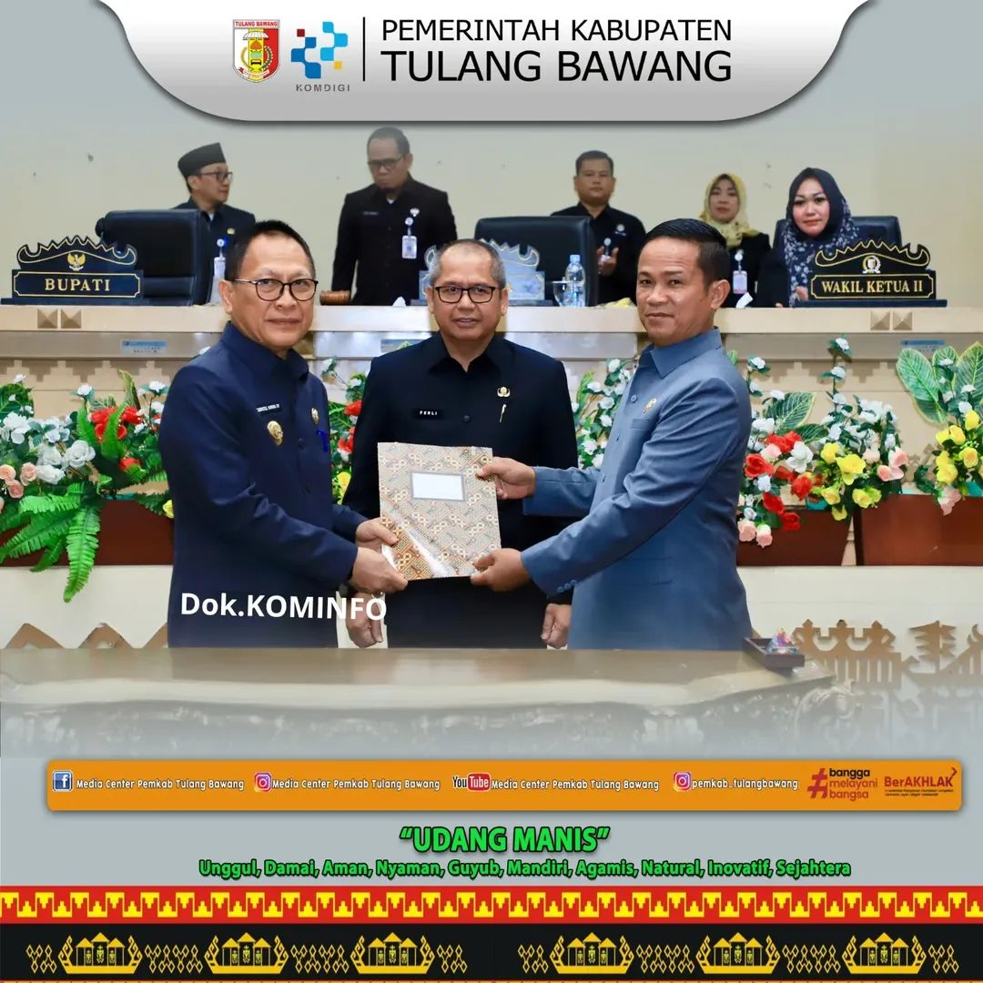Bupati Qudrotul juga nyampaikan apresiasi atas kerja sama yang solid antara Pemerintah Daerah dan DPRD Tulang Bawang selama proses pembahasan berlangsung.