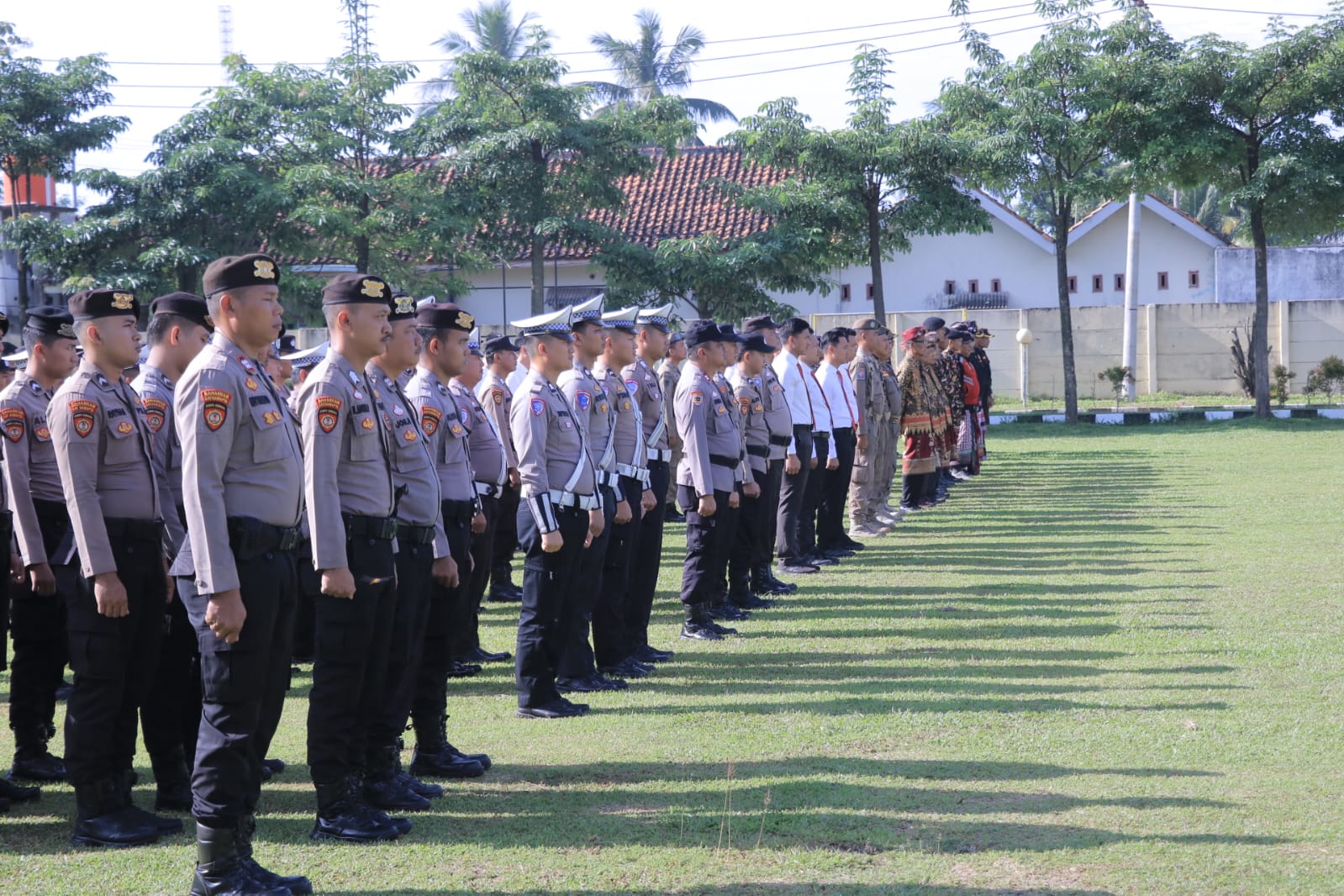 Apel ini bukan sekadar seremonial, melainkan bukti nyata sinergi kolosal dalam menjaga stabilitas keamanan. Ribuan peserta yang hadir terdiri dari PJU Polres, Kapolsek jajaran, Satpol PP, hingga elemen masyarakat seperti Tokoh Megouw Pak, Banser NU, Senkom, Pecalang Kamtibmas, dan PSHT. Mereka bersatu padu menyatakan komitmen menjaga wilayah.